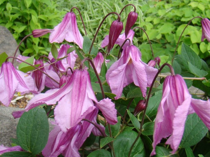 Clematis Alionushka is offered in a full gallon size with free shipping! It has nodding, pink flowers much larger than its integrifolia parent. It is suitable for many locations and has good shade tolerance. Allow it to drape out the front of a large mixed container planting for a dramatic statement or tuck it into your perennial border for easy summer color. It was bred in the Ukraine and is very hardy. It is an RHS Award of Garden Merit winner!