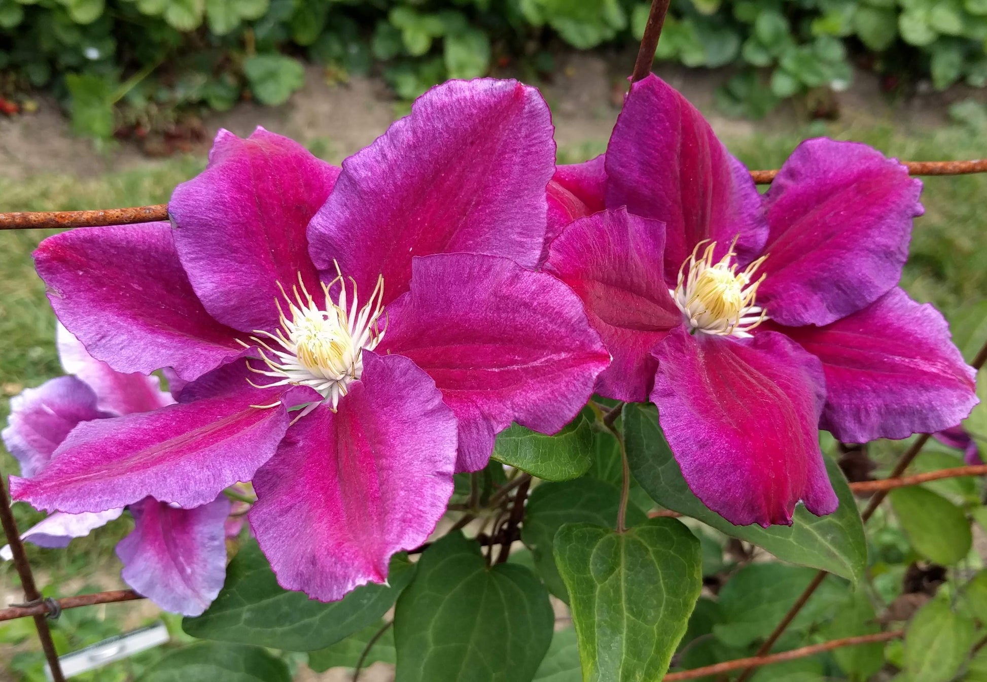 Clematis Hania is offered in a full gallon size with free shipping! Hania was named for the breeder's mother, Hanna. Blooms velvety bi-color flowers boasting two shades of red-purple on a vine up to 7 feet tall. Marczynski, Poland 2000.