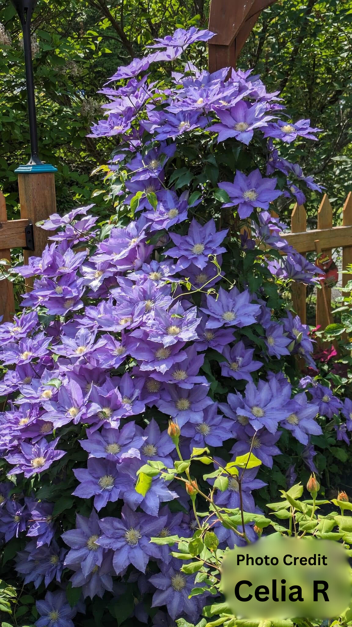 Clematis H F Young is offered in a full gallon size with free shipping! H F Young produces lovely, pale blue flowers with creamy yellow stamens. Blooms fully in late spring with a strong repeat at the end of the summer. Flowers can be up to 8 inches across! H F Young was awarded the Royal Horticultural Society's Award of Garden Merit in 1993. Try growing on a large obelisk or pair with Clematis Bill Mackenzie for a charming combination. (Pennell, 1962)